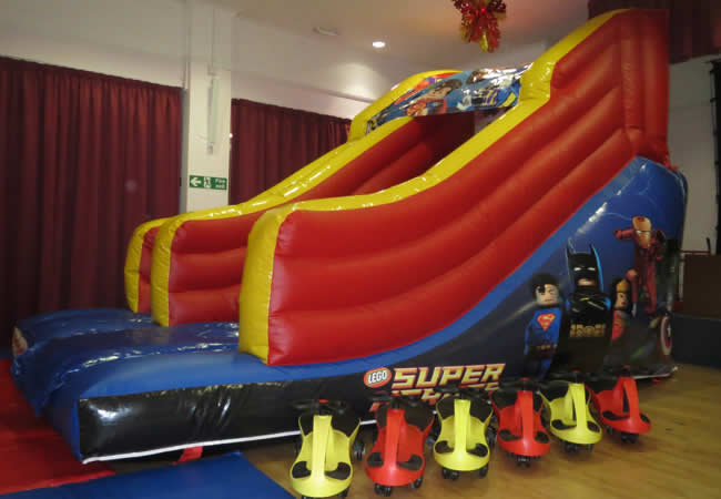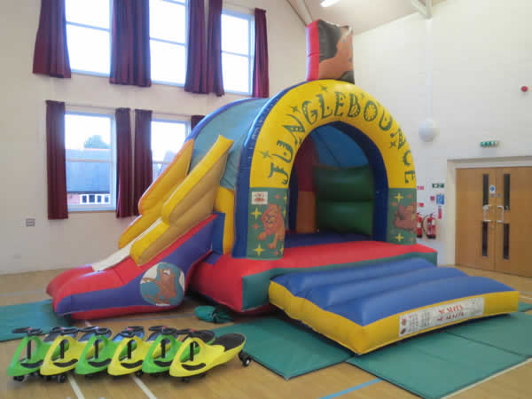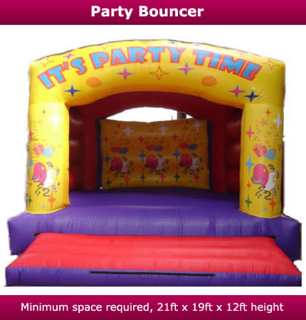 We can set-up our bouncy castles in about 20 minutes and the same for collecting, but allowing at least an hour either side of your party is much more practical. Our 12' x 14' Bouncers are suitable for over 95% of village halls that we have come across. Our larger castles are suitable for many of them too but it's worth checking when booking your hall for the size and space and pay particular attention to the ceiling height. We have information on many local halls for hire and which of our castles are suitable for them, we are very happy to advise customers when booking for their indoor parties.